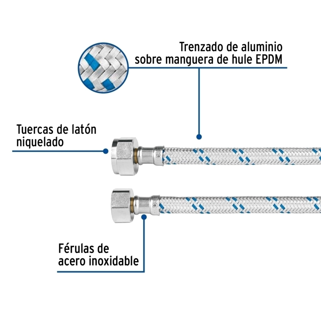 Manguera p/WC, aluminio, 1/2' x 7/8', 60 cm, Foset - 49127 FWC-60
